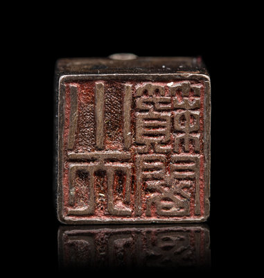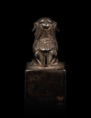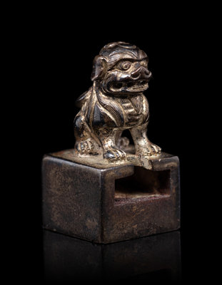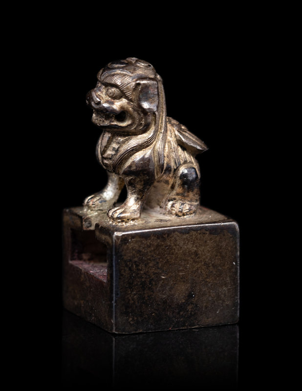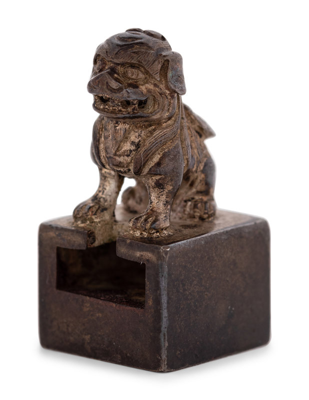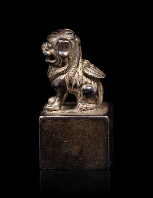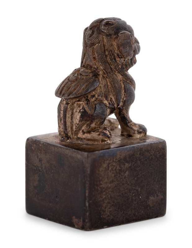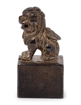 finial in the form of a sated lion, seal face carved Xiao Tianlai Ge, 小天籟閣.