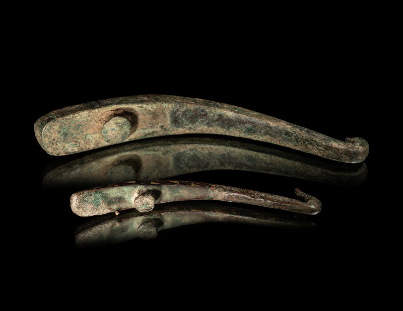 Two Inlaid Bronze Garment Hooks, Daigou
