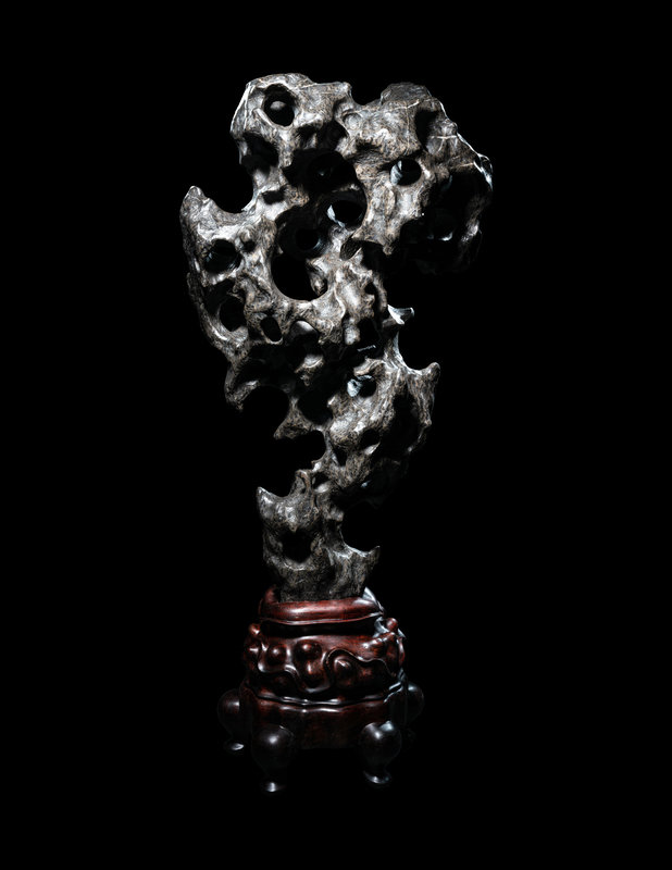 rising in the form of dissipating vaporous clouds, worked with numerous cavernous apertures and cavities, all raised above a raised hardwood stand.