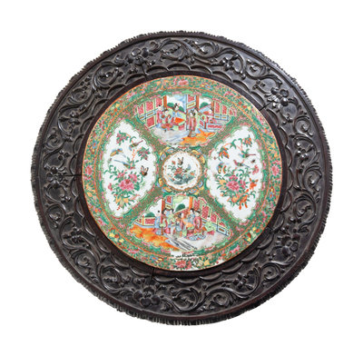 A Rose Medallion Porcelain Inset Rosewood Table