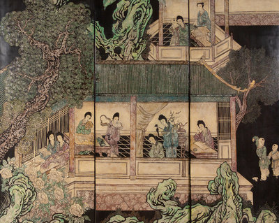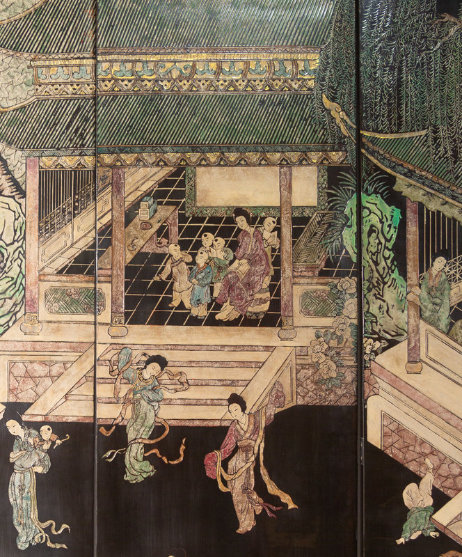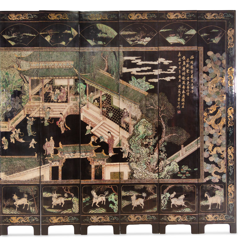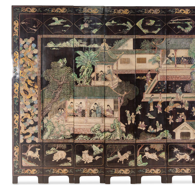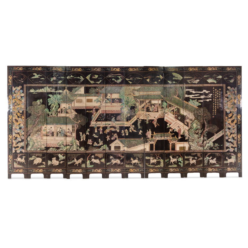 A Twelve-Paneled Coromandel Lacquer Floor Screen