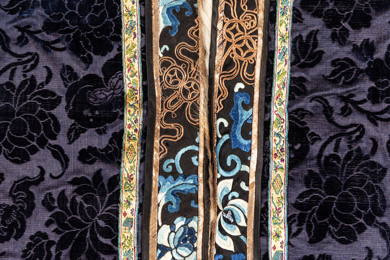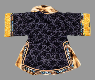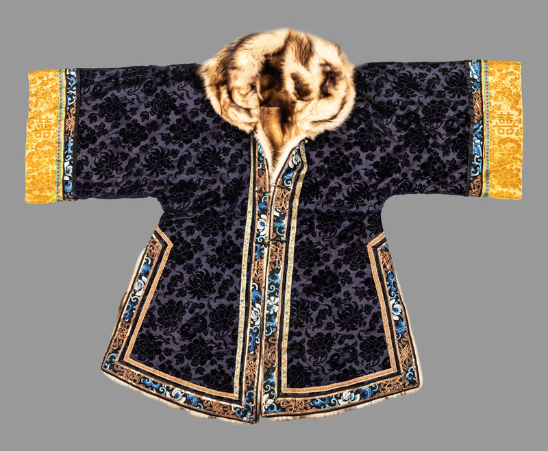 清晚期 藍漳绒牡丹紋黄鼠皮裏女大氅
