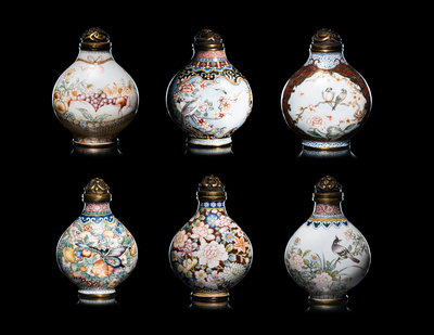 乾隆款銅胎畫琺琅鼻烟壺一套六隻