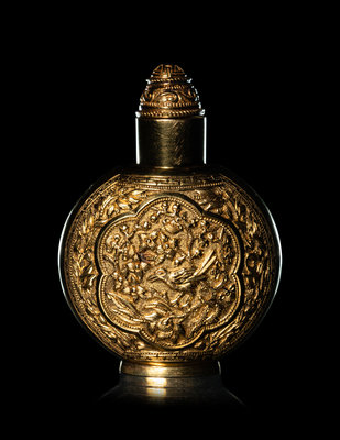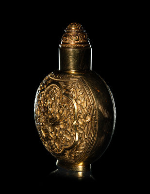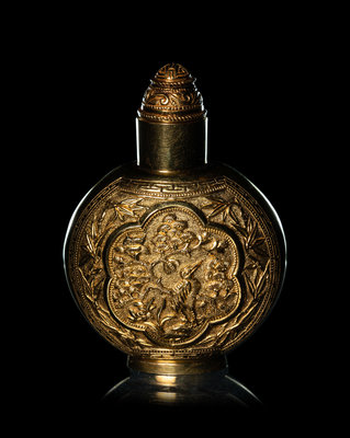 近代 22K金鏨花鳥圖鼻烟壺