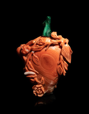民國 珊瑚雕桃枝蝙蝠鼻烟壺
