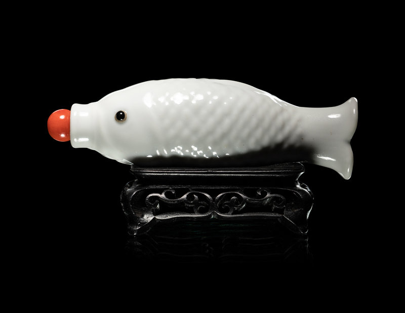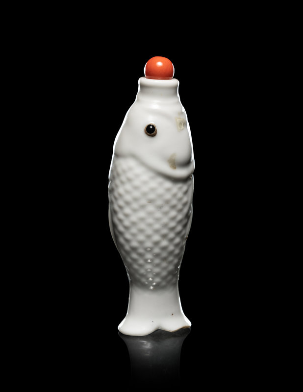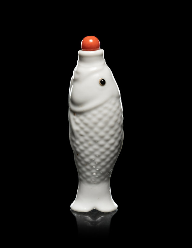 A Blanc-de-Chine Porcelain Fish-Form Snuff Bottle