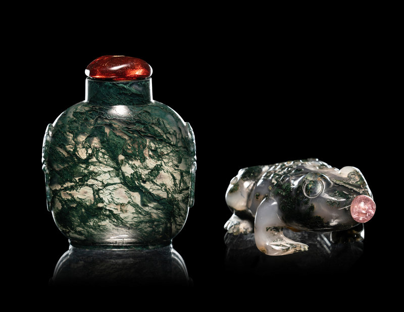Two Moss Agate Snuff Bottles