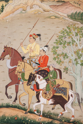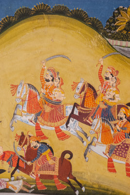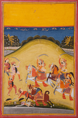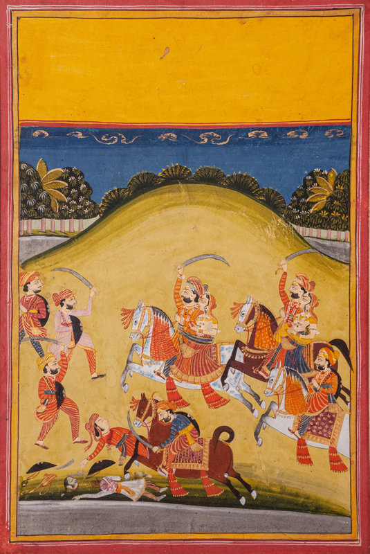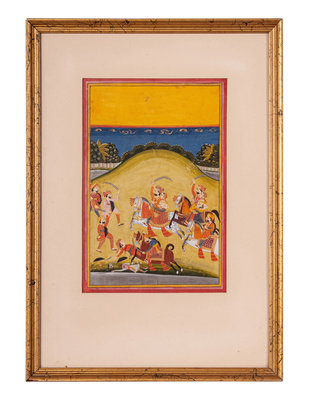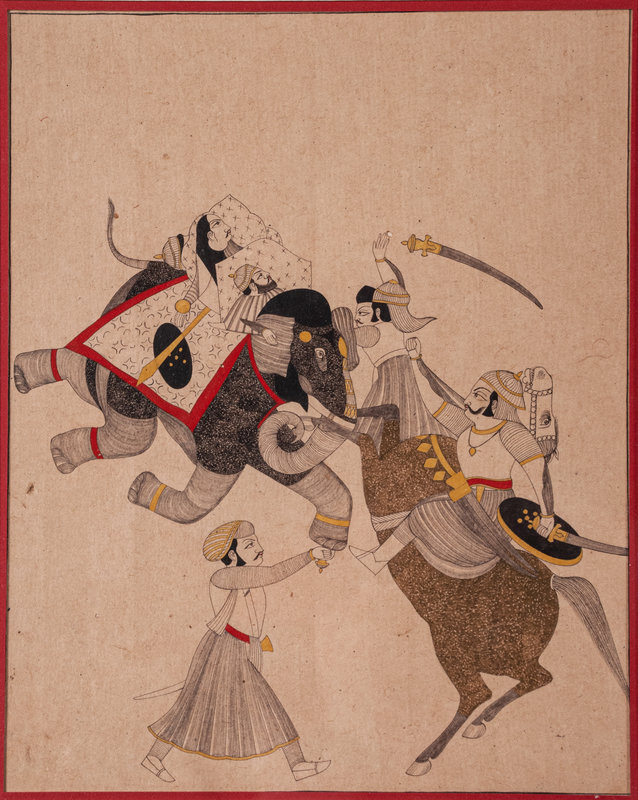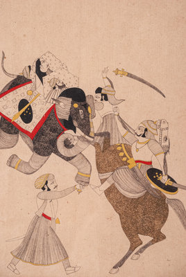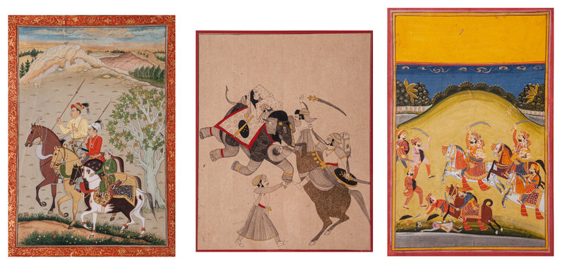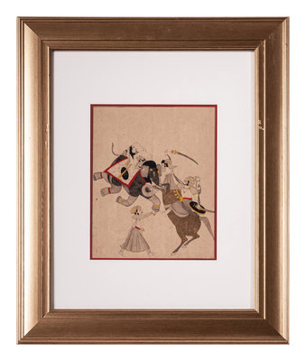 each depicting fighting scenes with animals, gouache on paper, framed.