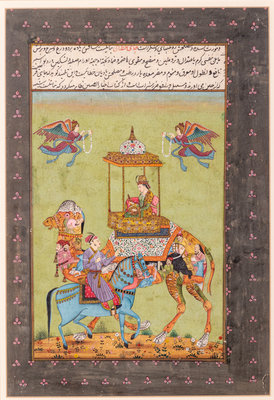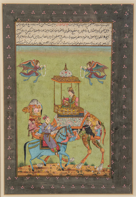the first showing an elephant, the second a camel, both gouache on paper, framed.