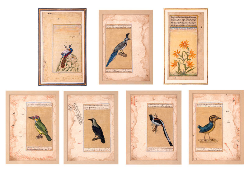 19世紀 伊斯蘭花鳥手稿七幅