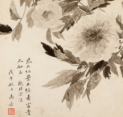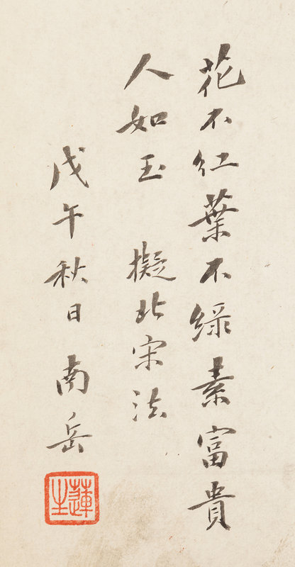 款識:花不紅,葉不綠,素富貴,人如玉。擬北宋法。戊午(1858)秋日,南岳。
