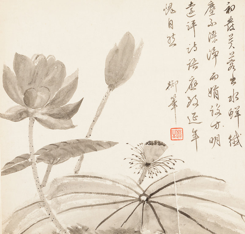 款識:初發芙蓉出水鮮,纖塵不染凈而娟。設方明遠評詩語,應致延年愧自然。御筆。
