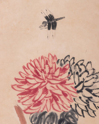 Chrysanthemums and a Dragonfly