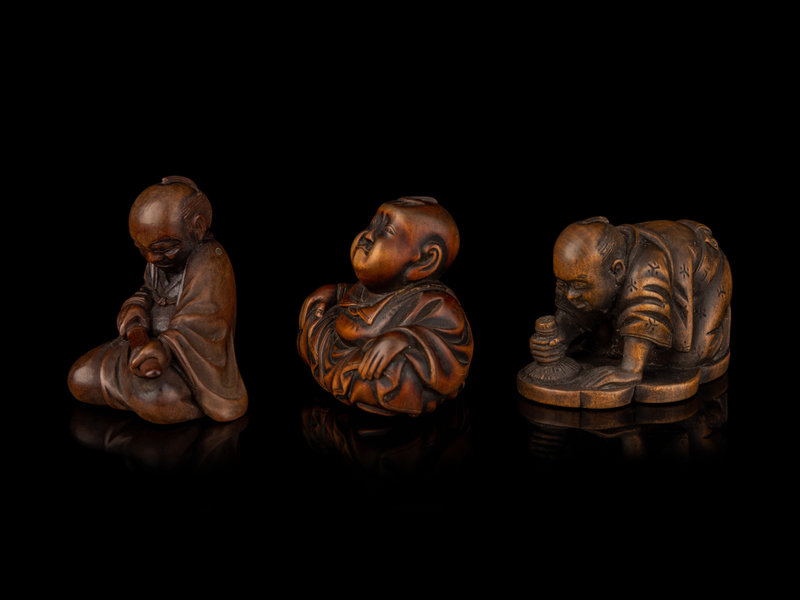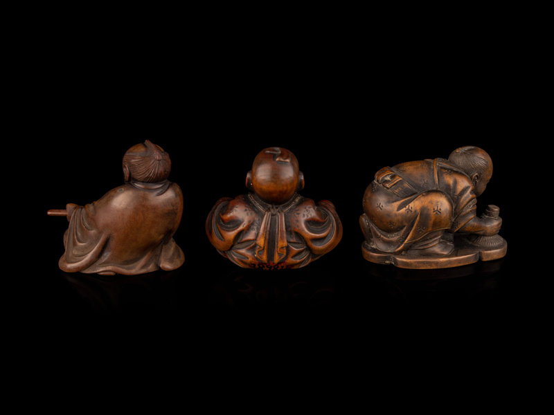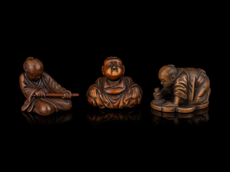 Three Japanese Carved Boxwood Figural-Form Netsuke