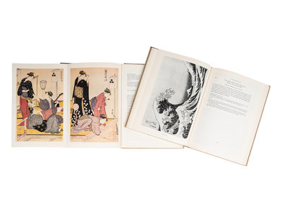 — LEDOUX, Louis V. Japanese Prints by Harunobu & Shunsho in the Collection of Louis V. Ledoux. New York: E. Weyhe, 1945. Vol. 2, 400 limited copies with 8 plates in full color and 44 in half-tone.