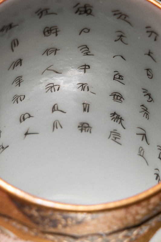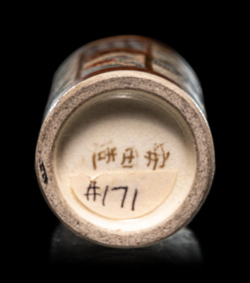 comprising one globular form example, one baluster form example, and two cylindrical examples, painted to depict figures at various tasks, and birds perched on branches.