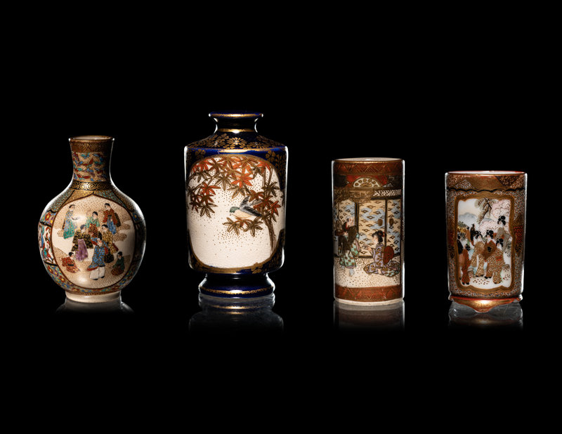 Four Japanese Satsuma and Kutani Miniature Vases
