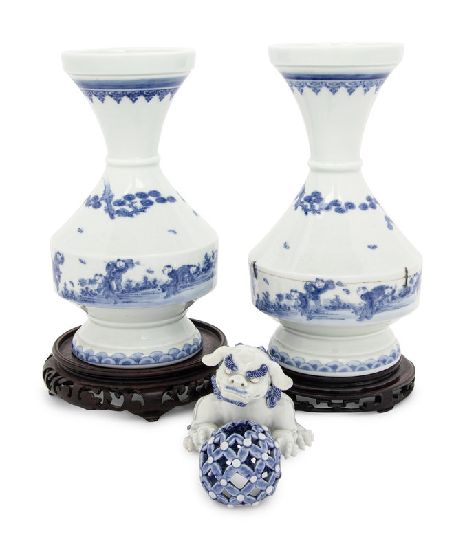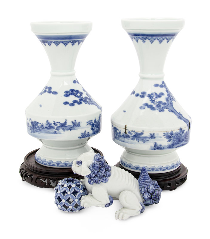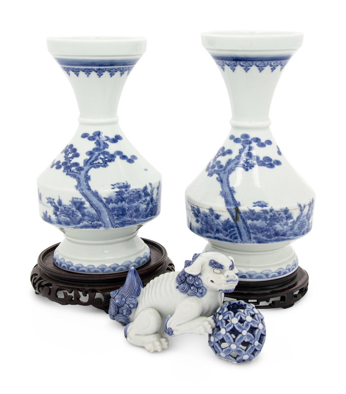 Three Japanese Blue and White Porcelain Articles
