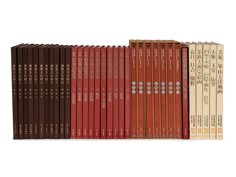 — Juyo bunkazai. Tokyo: Mainichi Shinbunsha, 1972. 11 volumes. Chiefly illustrations, some color. This series highlights Japan’s important cultural property including paintings, ceramics, and carvings.