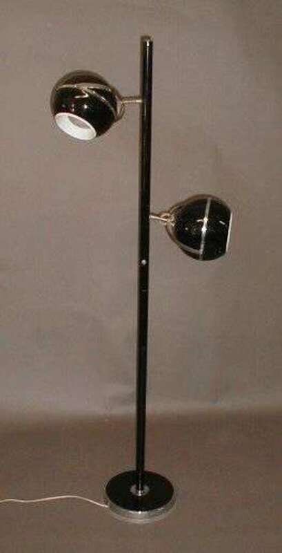 Of black metal with chrome mounts, pole form with two adjustable orb lights, h: 65.5 in.