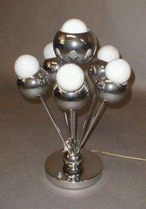 With chrome base and six chrome arms protruding with ball lights, Torino sticker, h: 21.25 in.