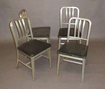 Each of extruded aluminum, the back with three slats and seat of perforated leatherette, metal tag, h: 33 in.