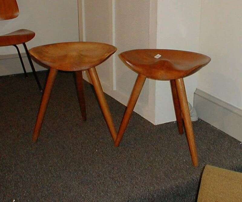 Each with shaped semi-circular seat on three dowel legs, h: 20 in.