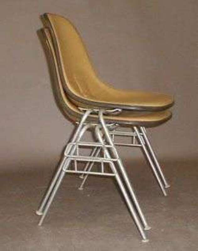 Each with fiberglass shell and yellow vinyl pad on aluminum legs, molded Herman Miller mark, h: 32.5 in.