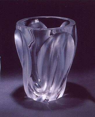 Of thick walled, conical form with four deeply cut and textured broad leaves gently spiraling up the exterior, h: 10.5 in.