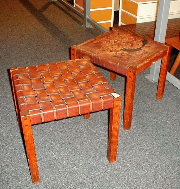 Pair of oak & leather stools