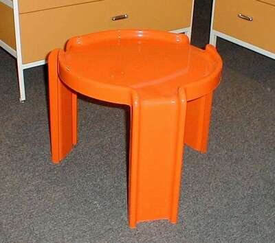 Circular & stacking of orange molded plastic w/molded mark, height of tallest: 16, dia: 17 in.