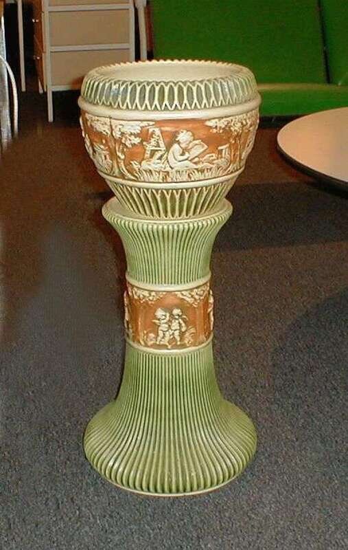 Earthenware plant stand, Donatello line ca. 1915, blue printed "RV" mark