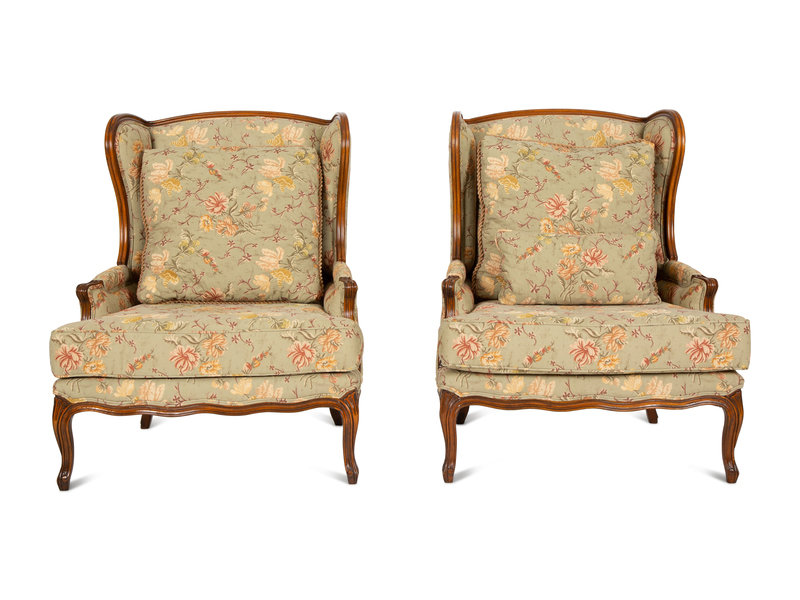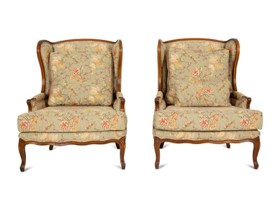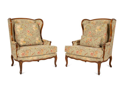 A Pair of Louis XV Style Fruitwood Bergères à Oreilles
