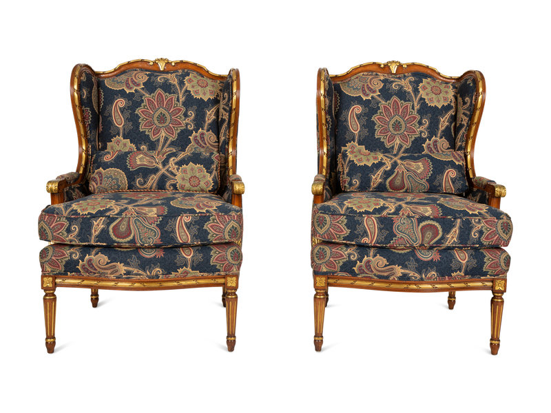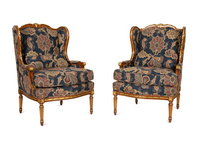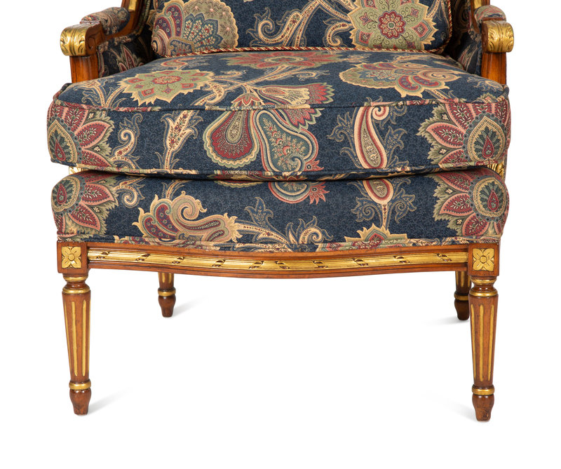 A Pair of Louis XVI Style Parcel Gilt Fruitwood Bergères