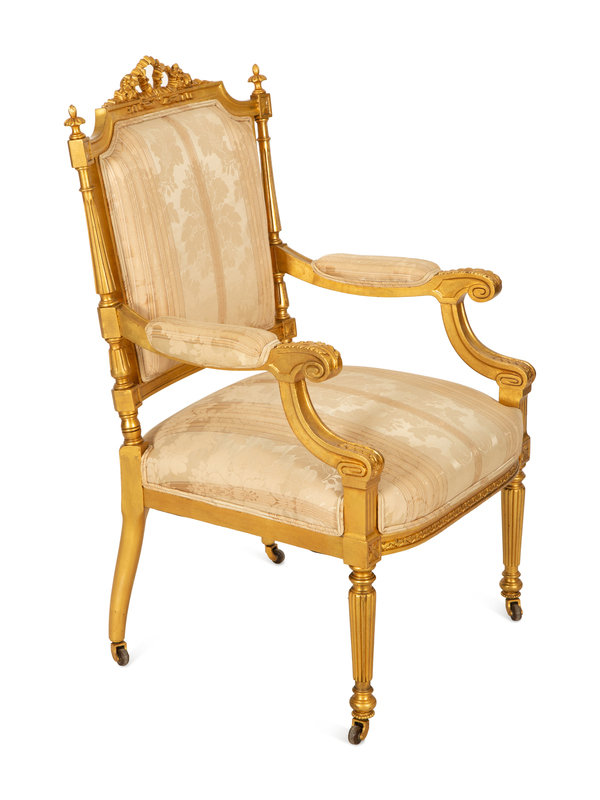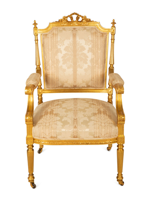 A Louis XVI Style Giltwood Armchair