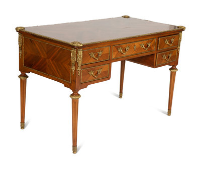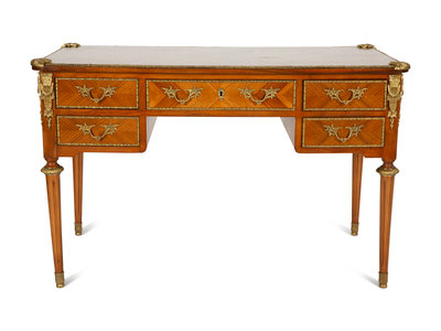A Louis XVI Style Gilt-Bronze Mounted Mahogany Bureau Plat