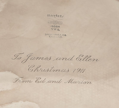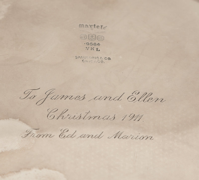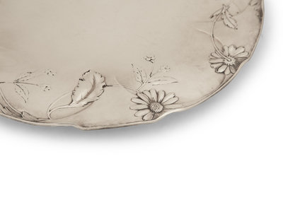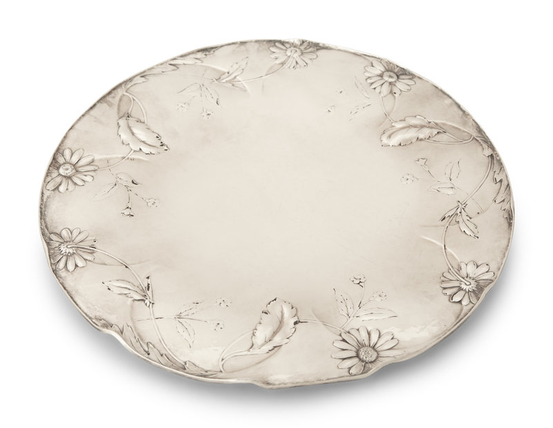 retailed By Spauling & Co., of circular form with scalloped edge, cast with flower heads and leaves.