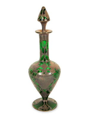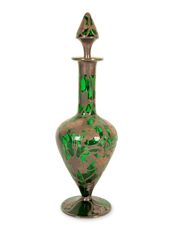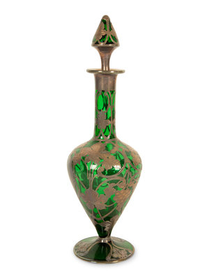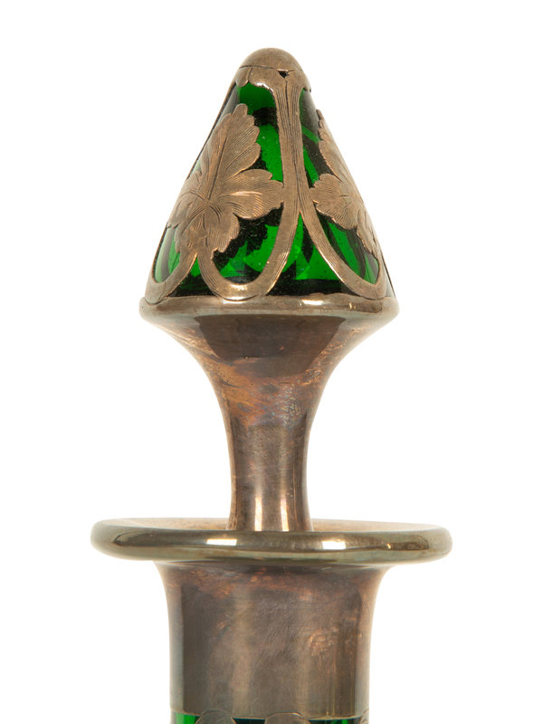 An American Silver Overlaid Green Glass Decanter