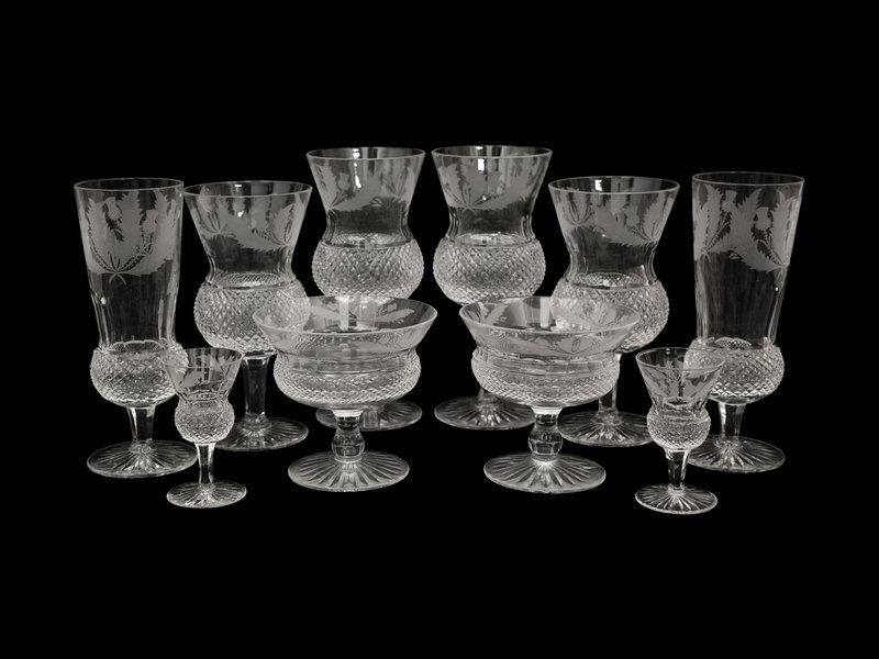 An Edinburgh Crystal Thistle Cut Glass Stemware Service