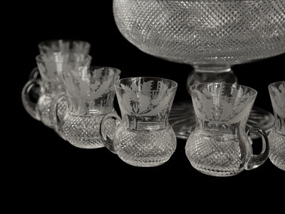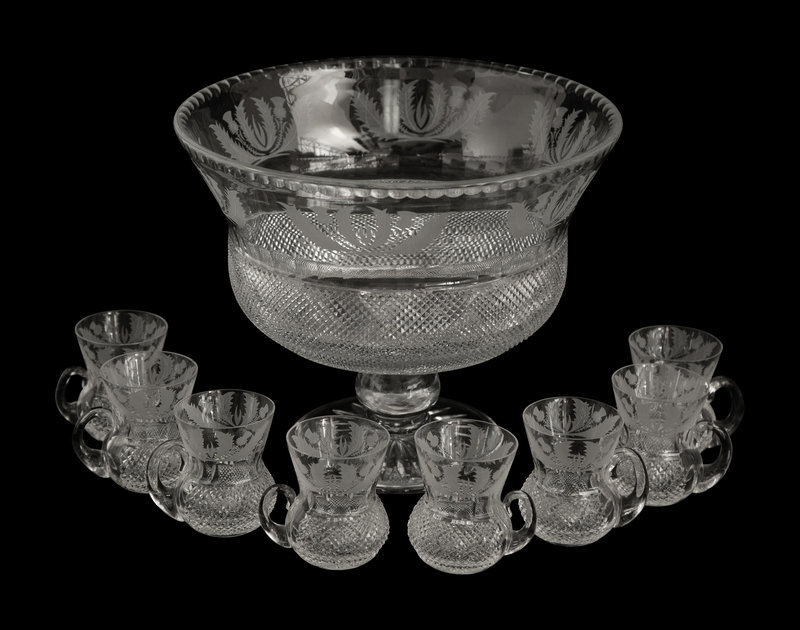 An Edinburgh Crystal Thistle Footed Punchbowl and Eight Punch Cups