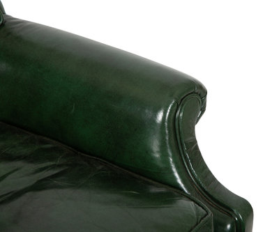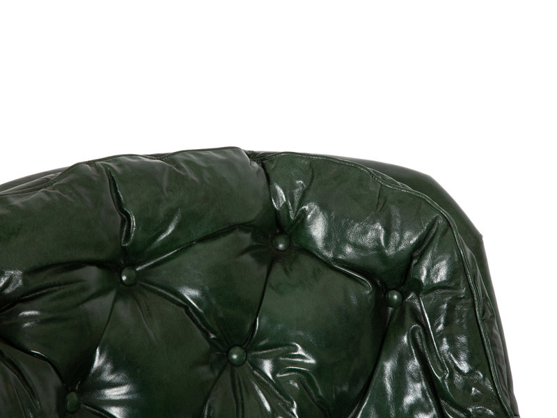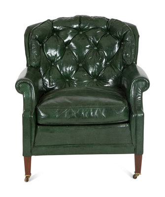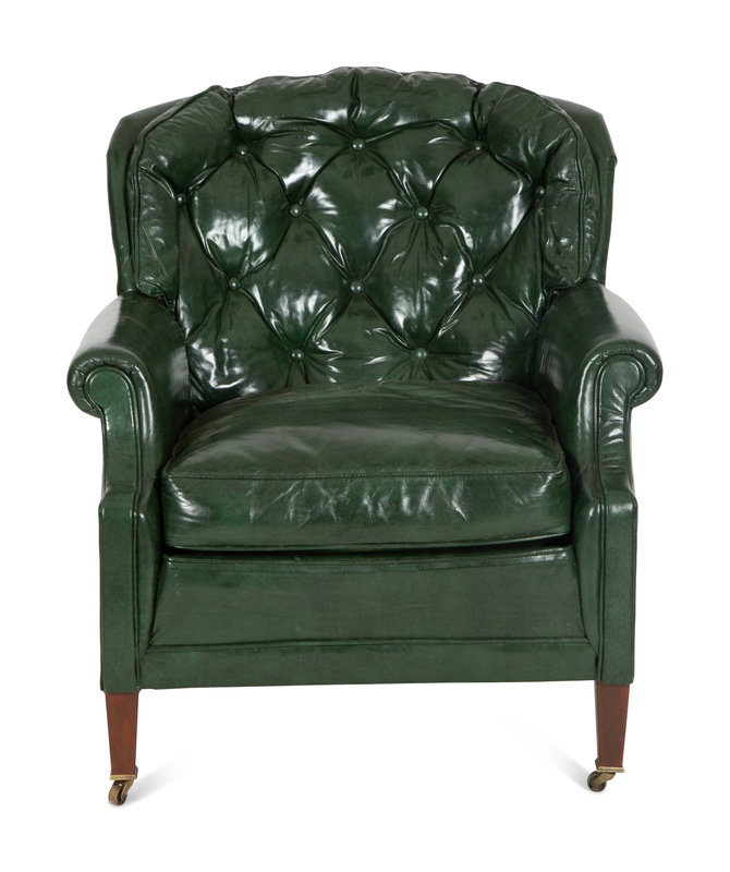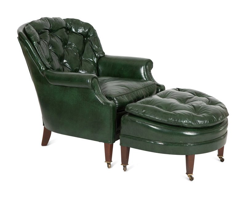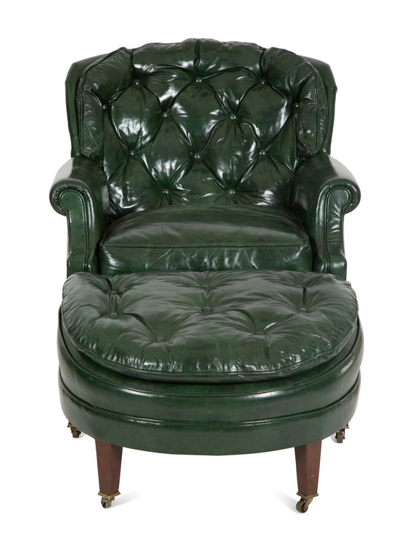 A Green Leather Button Tufted Club Chair and Ottoman