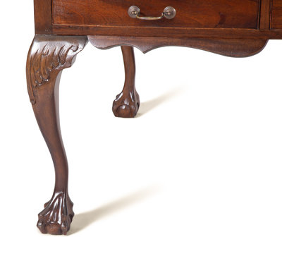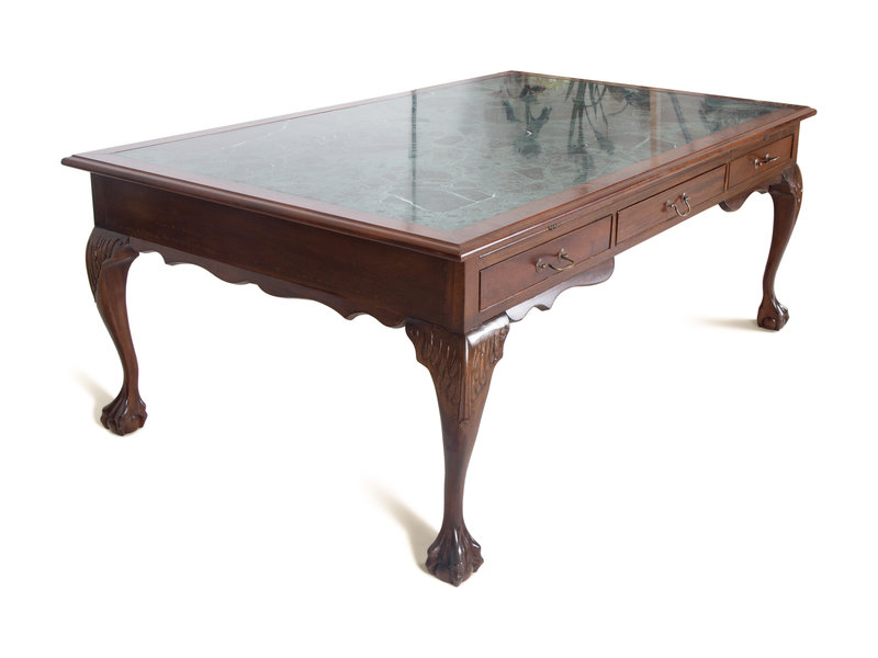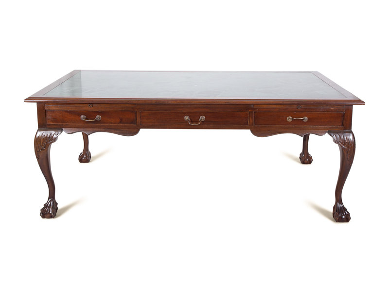 A Georgian Style Mahogany Partner's Desk with Inset Marble Top