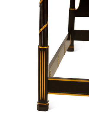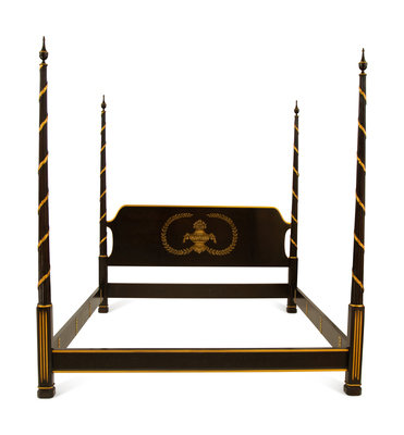 A Regency Style Ebonized and Gilt Four-Poster Bed