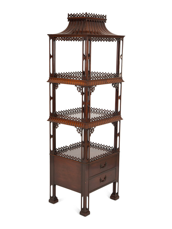 A Chinese Chippendale Style Mahogany Whatnot