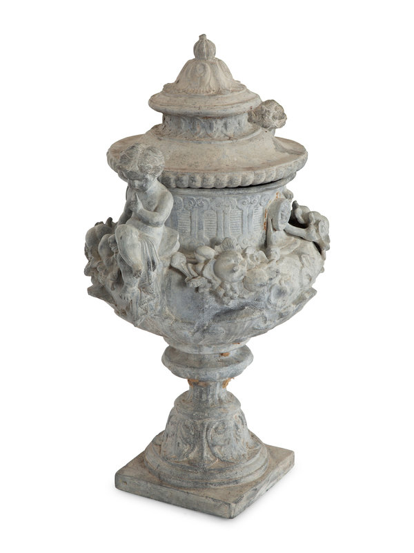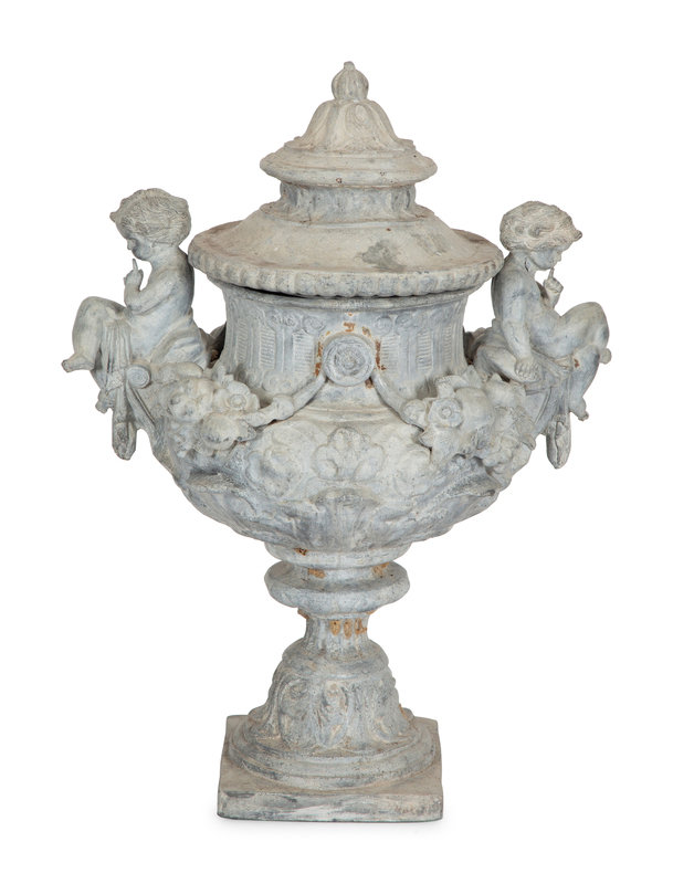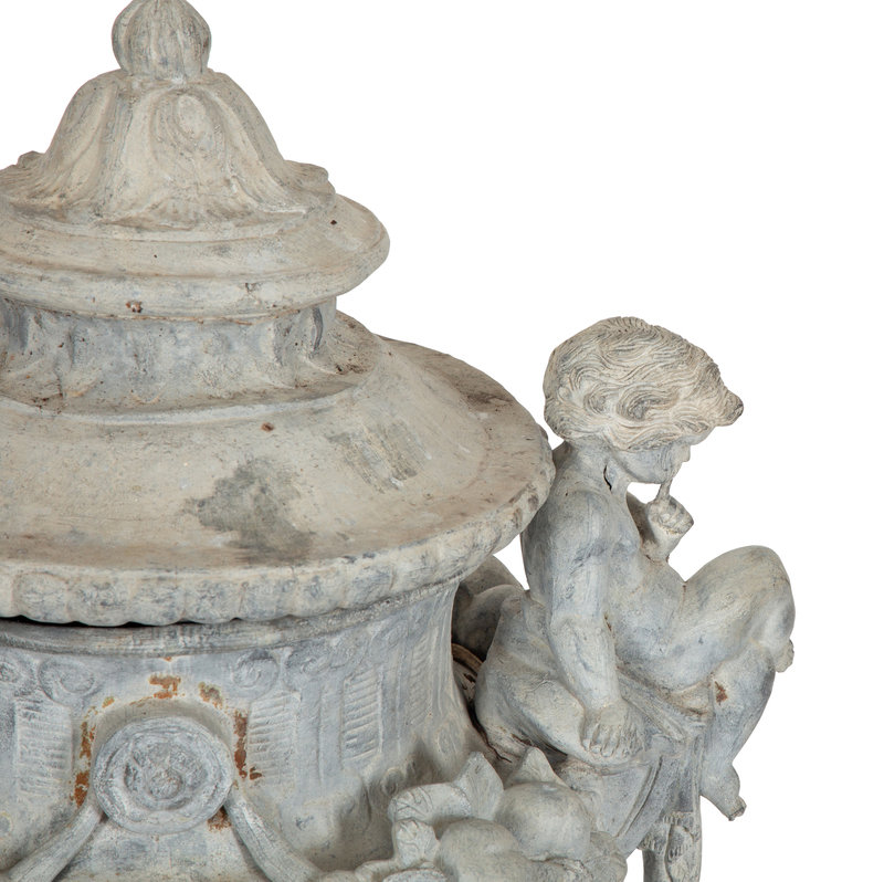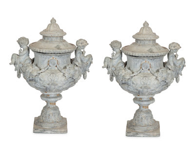 A Pair of Classical Style Cast Stone Covered Urns