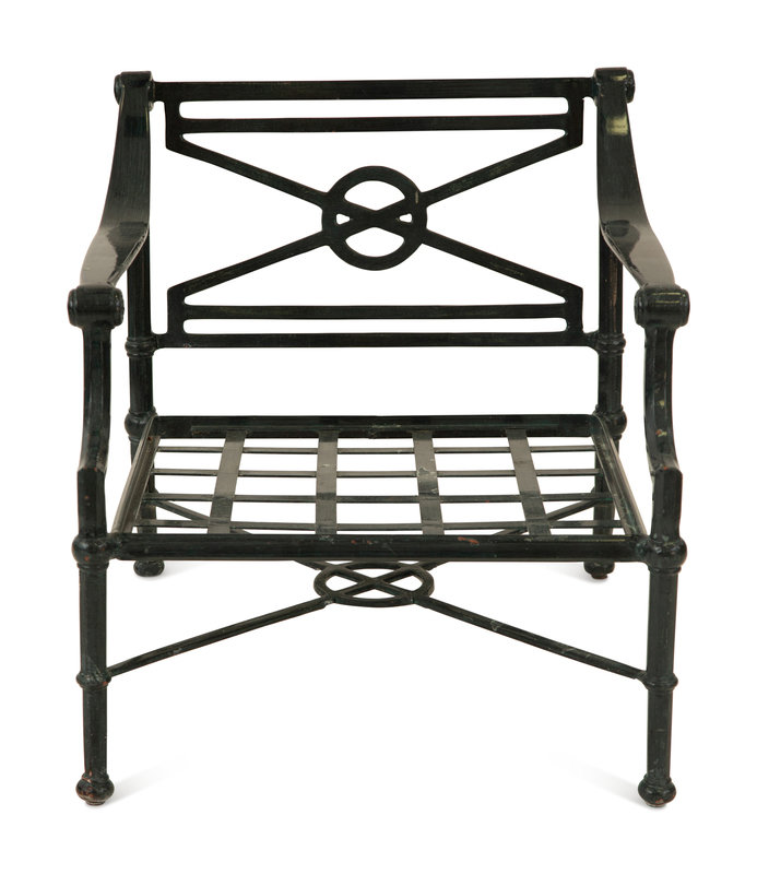A Group of Neoclassical Style Painted Aluminum Garden Furniture