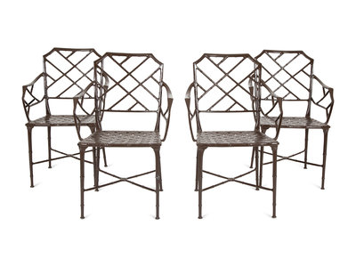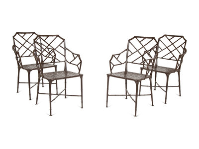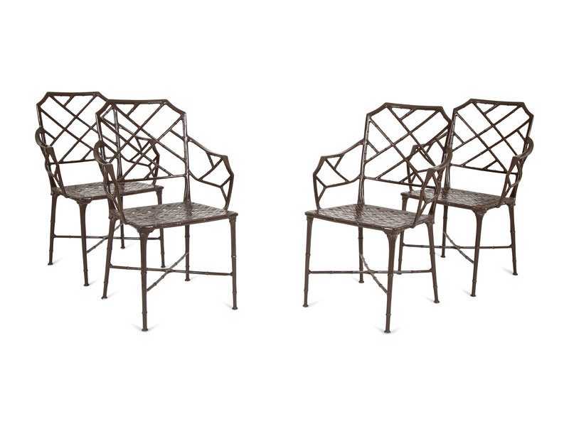 A Set of Eight Cast and Brown-Painted Aluminum Armchairs