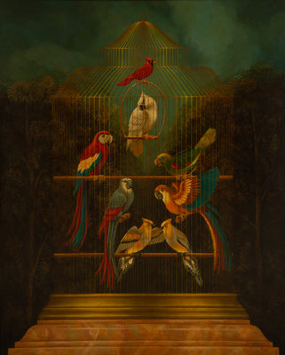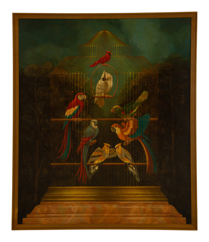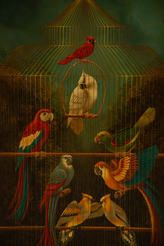 Tropical Birds in a Cage