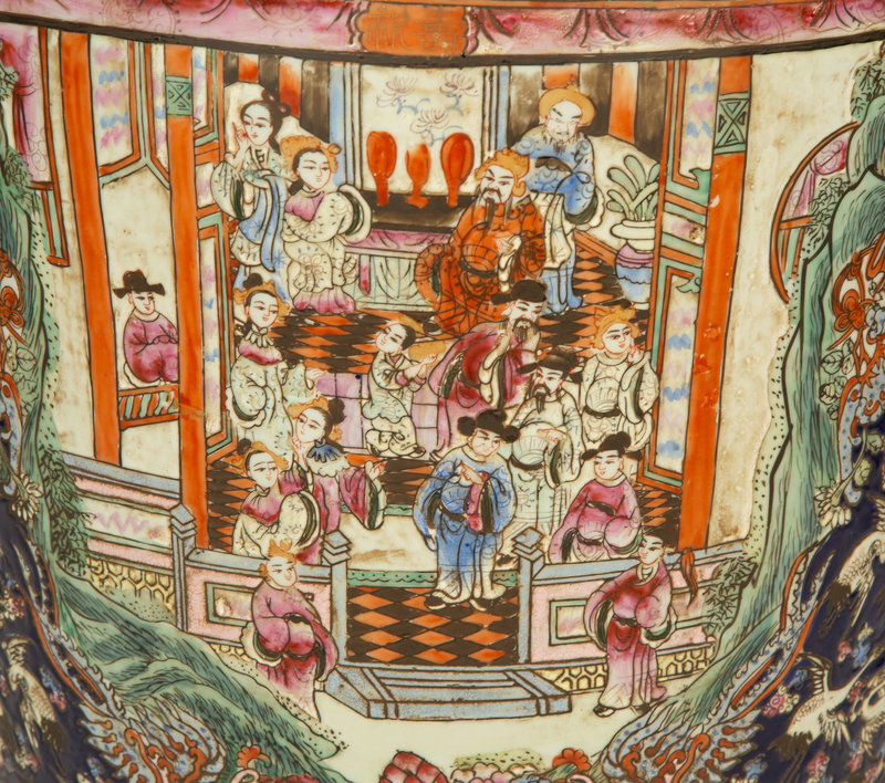 together with carved wood stands.