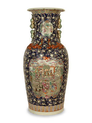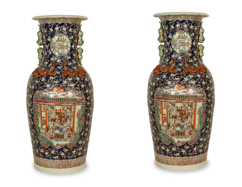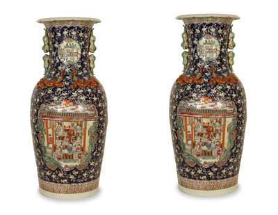 A Pair of Chinese Famille Noir Porcelain Floor Vases